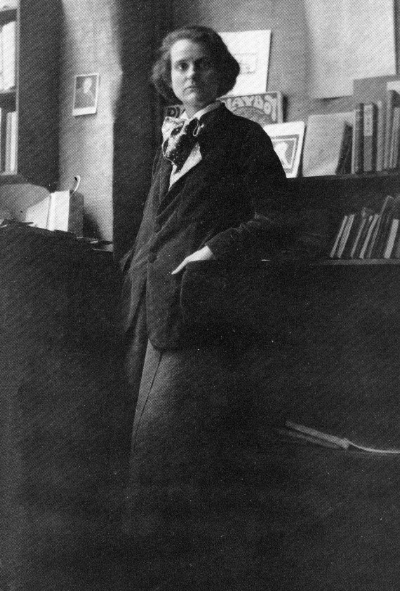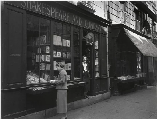 - Janet Flanner writes, “Her little Shakespeare bookstore in the rue de l’Odéon…had become an incalculably large radiating center of literary influence and illumination over which she modestly presided, as small in her person as in her premises,—adolescent in her size, with a schoolgirl cut of bobbed hair and white low collars, and economical steel-rimmed glasses.”
